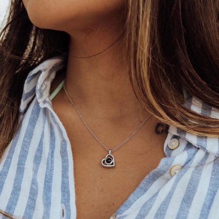 שרשרת לב כפול משובצת עם תמונה מוצפנת